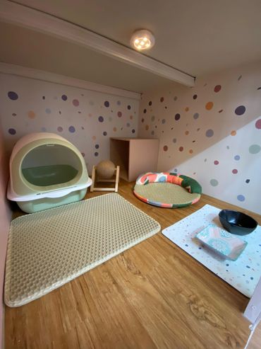 1m² space floor and 2.5m horizontal space is the ultimate room that you can provide for your furry kids while they are staying with us. Each villa has its own theme and inspo and fully equip with litter box, perches and other basic necessities. The Villa can fit up to 4 cats with additional RM20 for each cat.